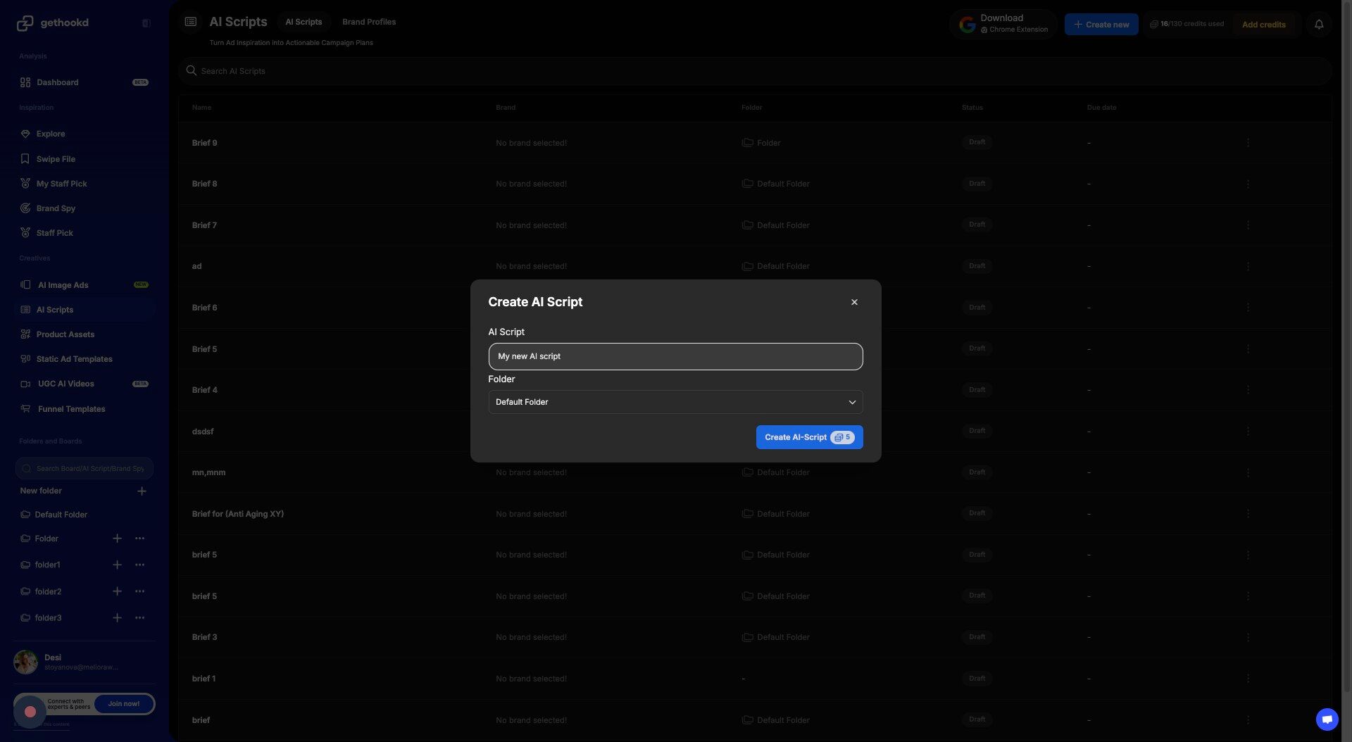 - AI Scripts β Uses 5 credits when generating new scripts.